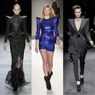 Daí no verão 2009 elas voltaram novamente, e ainda com mais força, o que persistiu no inverno 2009, que veio cheio de referências 80’s novamente – pense em Marc Jacos, Louis Vuitton, Calvin Klein, YSL, Stella McCartney e muitas outras. Depois da Balenciaga e Martin Margiela com seus ombros pontudos e estruturados, veio a epidemida Balmania (da Balmain) instaurando o look tough-chic de Christopher Decarin, com aquele estética rock’n’roll cheia da glamour, onde os ombros ganhavam toda atenção.